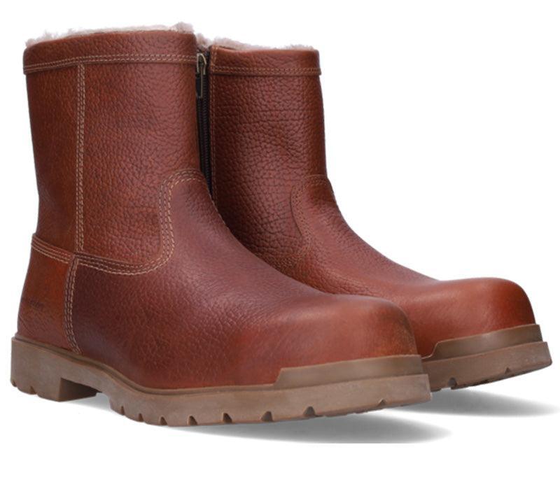 Deze S3S werklaarzen van Footfellas zijn gemaakt van sterk volnerf rundsleder dat slijtvast em waterafstotend is. Deze halfhoge veiligheidslaarzen hebben een stoer uiterlijk en zijn ontworpen voor intensieve werkomstandigheden. De warme voering van 100% echt schapenbont houdt je voeten lekker warm, ook bij lage temperaturen, terwijl het natuurlijke bont ademend blijft en vocht goed afvoert. De Alvar werklaarzen zijn volledig metaalvrij en voorzien van een lichte NANO veiligheidsneus van glasvezel en een flexibele antiperforatiezool die je beschermt tegen scherpe voorwerpen als spijkers en schroeven. De rubberen loopzool is hittebestendig tot 300°C (HRO) en heeft een SRC antislipnormering, waardoor je grip houdt op uiteenlopende ondergronden. Dankzij de FO-normering is de zool bestand tegen olie en brandstoffen, en de CI-normering zorgt voor extra isolatie wanneer je op koude vloeren loopt of werkt. De LG ladder grip zorgt voor extra veiligheid wanneer je op een ladder staat. De stevige YKK-ritssluiting aan de zijkant maakt het aan- en uittrekken snel en eenvoudig, zonder in te leveren op stevigheid of pasvorm.
