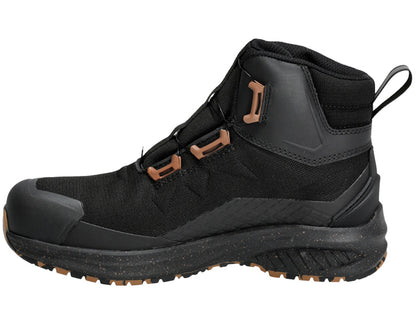 De praktische BOA®-sluiting aan de zijkant maakt veters overbodig: met één hand stel je de schoen snel en veilig af, ook met handschoenen aan. De composiet veiligheidsneus beschermt tegen impact, terwijl de extra verstevigde TPU-kruipneus slijtage voorkomt bij knielend werk. De flexibele MASCOLAYER® antiperforatiezool van textiel beschermt tegen scherpe voorwerpen, en de ESD-certificering maakt deze schoenen geschikt voor elektrostatisch gevoelige omgevingen. De lichtgewicht EVA-tussenzool en uitneembare, schokdempende inlegzool zorgen voor optimale demping bij elke stap. De slipvaste nitrilrubberen buitenzool is olie- en benzinebestendig en biedt stevige grip op natte of gladde oppervlakken.