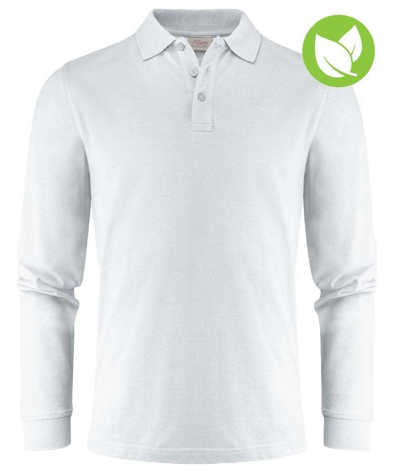 Dit witte poloshirt met lange mouwen van Printer is gemaakt van organisch katoen en gerecycled polyester. Dit betekent dat je met dit poloshirt duurzaam bezig bent! Het poloshirt heeft een kraag met drie knopen en zijsplitten. Dit artikel zit verpakt in een composteerbaar zakje.