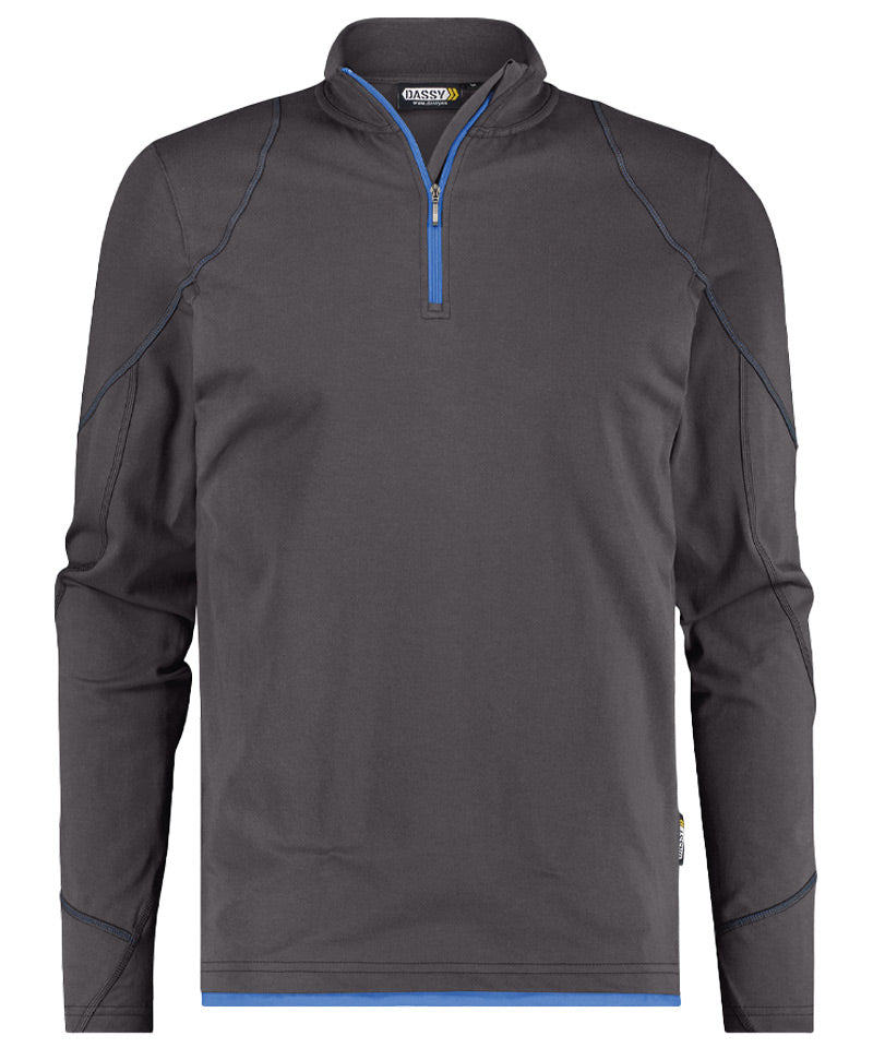 Dit T-shirt met lange mouwen van Dassy biedt comfort en houdt je warm tijdens koudere dagen! Dit T-shirt heeft een ribboord aan de hals en versterking van schouder tot schouder. Daarnaast heeft dit T-shirt nog een ritssluiting met kinbescherming.